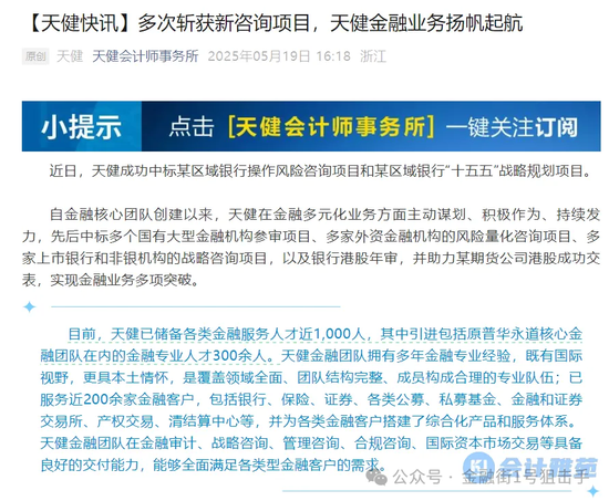 近日,天健发布官方消息,已储备各类金融服务人才近1,000人,其中引进包括原普华永道核心金融团队在内的金融专业人才300余人。